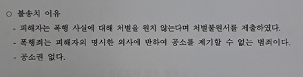 결과 — 처벌불원서 제출 및 공소권 없음 불송치
