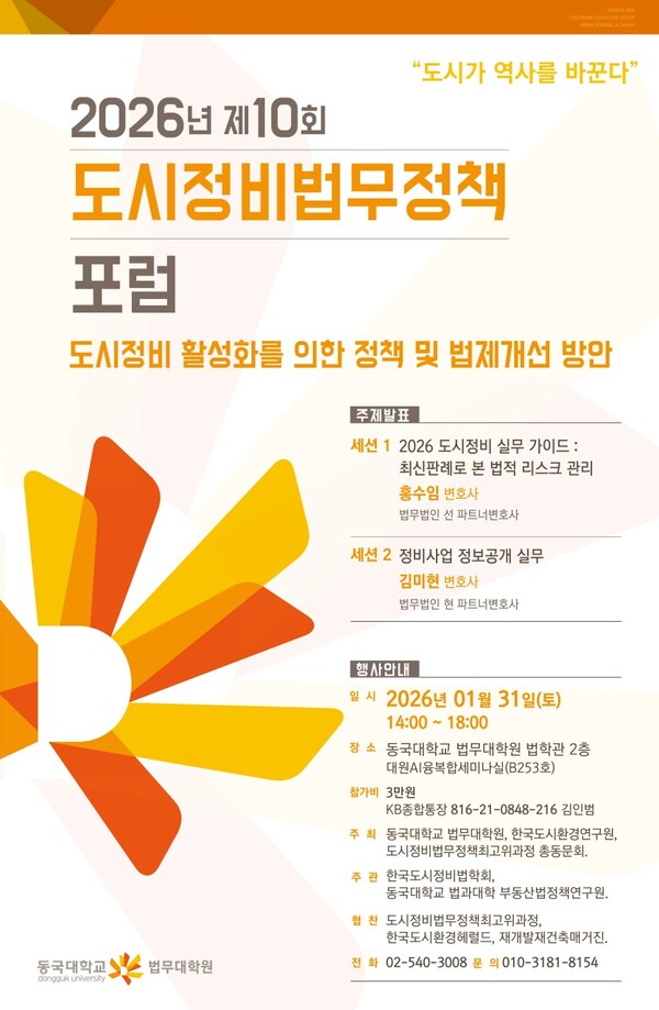 발표를 마무리하며 홍수임 변호사는 도시정비사업 소송의 본질을 다음과 같이 정리했다. “정비사업 분쟁은 사업성보다 절차에서 비롯되는 경우가 대부분입니다. 총회 의결 과정, 고지 방식, 정관 규정, 계약서 조항 하나하나가 향후 대규모 분쟁의 출발점이 됩니다.” 이번 강연은 재개발·재건축 조합 임원, 정비사업전문관리업자, 시공사, 감정평가사 등 실무자들에게 지금 시점에서 점검해야 할 판례 기준 리스크 정리 자료로 활용 가능하다는 평가를 받았다. 제10회 도시정비법무정책포럼에서 제시된 홍수임 변호사의 판례 분석은, 향후 도시정비사업 추진 과정에서 법적 안정성을 높이기 위한 실무 가이드로 참고될 전망이다.